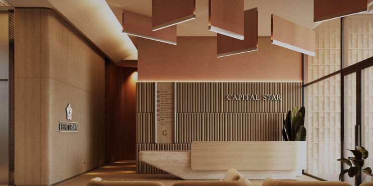 Table of contents Capital Star Commercial Tower in Majan, Dubai Capital Star by Centurion Group is a Grade A office building in the heart of Majan in Dubai, offering an upscale workplace solution for startups, entrepreneurs, and established enterprises. Capital Star Commercial Tower in Majan, Dubai is awarded for its future-readiness, exposure, and flexibility in work experiences. Capital Star redesigns busisness property with smart infrastructure, well-being-driven space, and high-end interiors in a seamless ecosystem. This is a mid-rise office building with retail podium at ground level, four basement parking levels, six full commercial levels, and gym on the roof. The